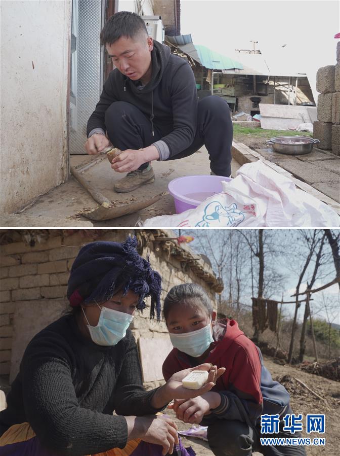 拼版照片上圖:在四川省涼山彝族自治州美姑縣瓦古鄉(xiāng),彭?xiàng)钤谙魍炼蛊?,?zhǔn)備制作土豆手工皂(3月10日,新華社記者吳光于攝);下圖:在瓦古鄉(xiāng),15歲的沙馬也曲(右)和她的媽媽拿到了彭?xiàng)钪谱鞯耐炼故止ぴ恚?月10日,新華社記者薛晨攝)。四川省涼山彝族自治州美姑縣瓦古鄉(xiāng)扶貧干部彭?xiàng)钏诘墓庞X村距鄉(xiāng)政府20公里,是美姑縣80個(gè)尚未脫貧村之一。他深知養(yǎng)成好的生活習(xí)慣,對(duì)當(dāng)?shù)孛撠氈陵P(guān)重要,所以他不僅督促老百姓疊被子、整理房間,幫當(dāng)?shù)氐暮⒆觽兿搭^、洗澡,還在疫情期間自制土豆手工皂分發(fā)給村民。彭?xiàng)钫f,疫情后準(zhǔn)備發(fā)動(dòng)留守婦女生產(chǎn)手工皂,計(jì)劃在1年內(nèi)建成一個(gè)吸納瓦古鄉(xiāng)4個(gè)村村民的手工皂合作社。黨的十八大以來,我們堅(jiān)持以人民為中心的發(fā)展思想,明確了到2020年我國現(xiàn)行標(biāo)準(zhǔn)下農(nóng)村貧困人口實(shí)現(xiàn)脫貧、貧困縣全部摘帽、解決區(qū)域性整體貧困的目標(biāo)任務(wù)。目前看,脫貧進(jìn)度符合預(yù)期,成就舉世矚目。這些成績的取得,凝聚了全黨全國各族人民智慧和心血,是廣大干部群眾扎扎實(shí)實(shí)干出來的。脫貧摘帽不是終點(diǎn),而是新生活、新奮斗的起點(diǎn)。新華社發(fā)