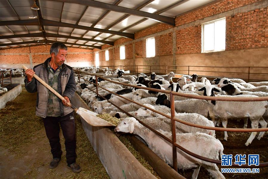 宋家溝村村民賀毛小在養(yǎng)殖合作社內(nèi)喂羊(5月19日攝)。新華社記者曹陽(yáng)攝