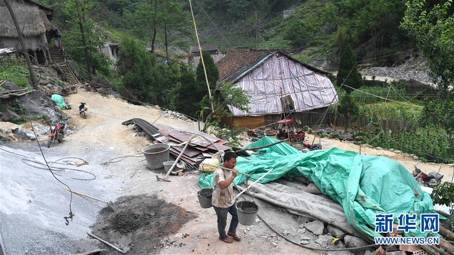 大化瑤族自治縣弄合村弄根屯群眾在建新房(5月13日攝,無人機照片)。新華社記者周華攝
