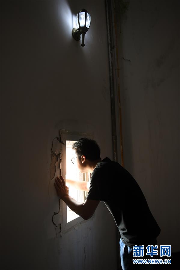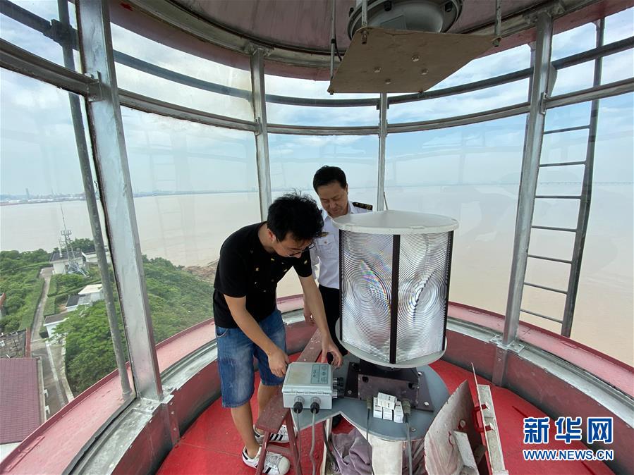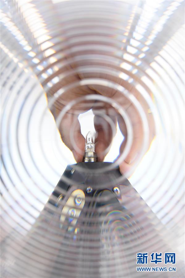 5月20日,在寧波七里嶼燈塔上,葉家第五代燈塔工葉超群在更換破損的燈泡。葉超群自2013年起在七里嶼燈塔工作。新華社記者翁忻旸攝