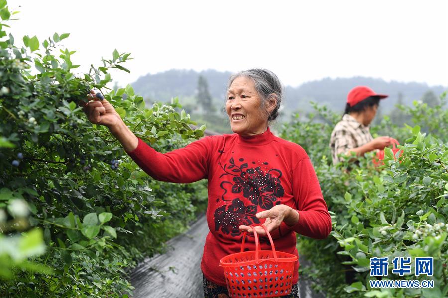5月21日,村民在茨竹鎮(zhèn)大面坡村藍桂香園藍莓基地采摘藍莓。近日,位于重慶市渝北區(qū)茨竹鎮(zhèn)大面坡村的600余畝藍莓陸續(xù)進入采摘期。近年來,茨竹鎮(zhèn)探索“公司+基地+農(nóng)戶”的模式,利用良好的自然條件,積極發(fā)展高山藍莓產(chǎn)業(yè),在取得良好經(jīng)濟效益的同時,有效帶動當(dāng)?shù)卮迕窬蜆I(yè)增收。新華社記者王全超攝