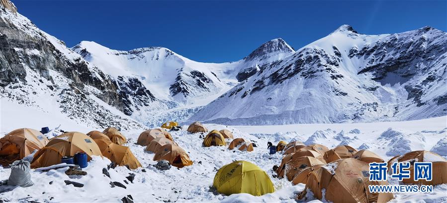 被大雪覆蓋的海拔6500米的珠峰前進(jìn)營地(5月22日攝,手機(jī)照片)。新華社記者晉美多吉攝
