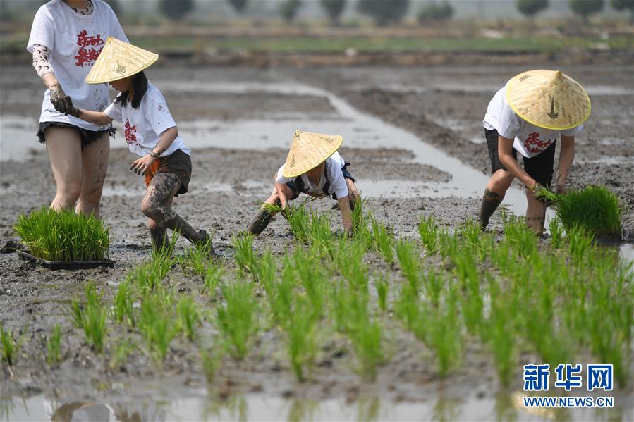 5月24日,小朋友與家長在稻田里參加親子插秧比賽。當日,十余名小朋友在家長的帶領(lǐng)下來到浙江省湖州市吳興區(qū)八里店鎮(zhèn)尹家圩糧油植保農(nóng)機專業(yè)合作社的稻田中,參加親子插秧、稻田捉魚等農(nóng)事體驗活動。新華社記者黃宗治攝