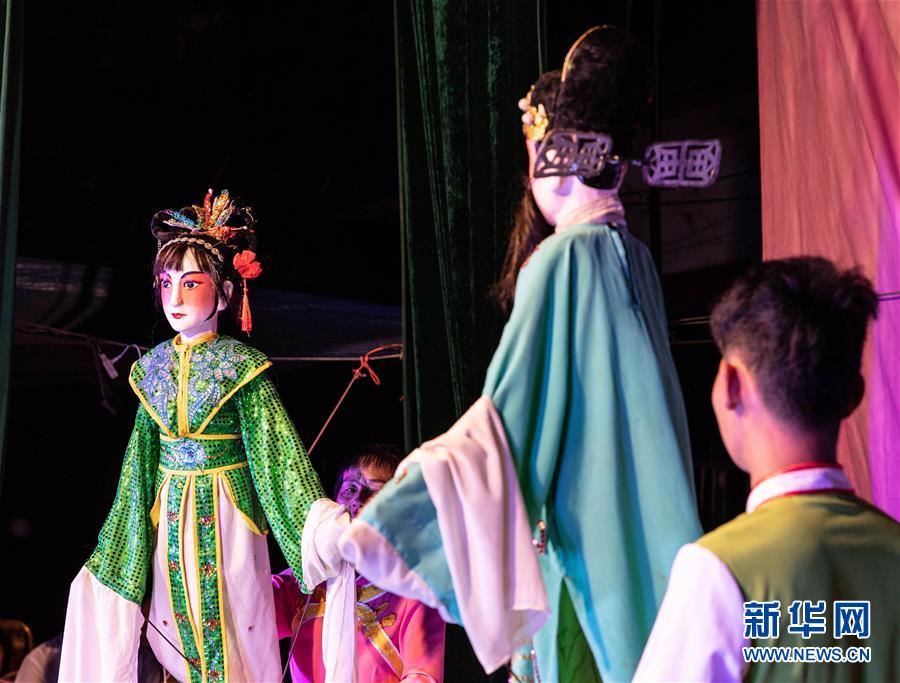 5月24日,海南臨高新風(fēng)人偶戲團(tuán)在臨高縣美朗村演出。新華社記者張麗蕓攝