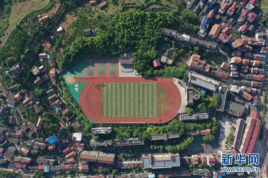 位于湖南省湘西土家族苗族自治州的瀘溪縣第五中學(xué)(5月22日攝,無人機照片)。新華社記者薛宇舸攝