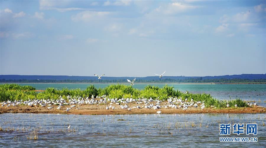 5月27日在陜西省神木市紅堿淖拍攝的遺鷗。陜西省神木市紅堿淖是中國最大的沙漠淡水湖,近年來隨著周邊生態(tài)環(huán)境改善,紅堿淖水位逐年提升,水域面積不斷擴大,每年四至八月,都會吸引大批遺鷗來此繁衍棲息,已成為遺鷗繁殖的重要基地。新華社記者陶明攝