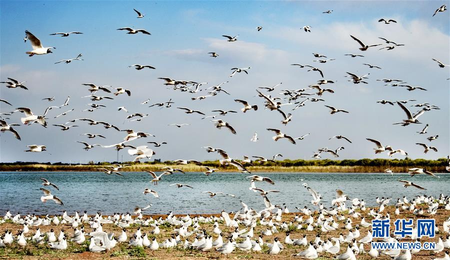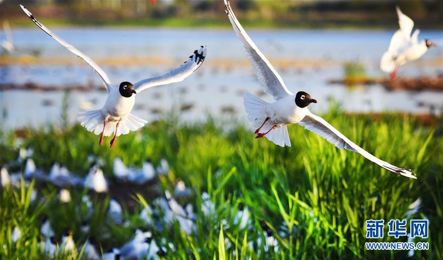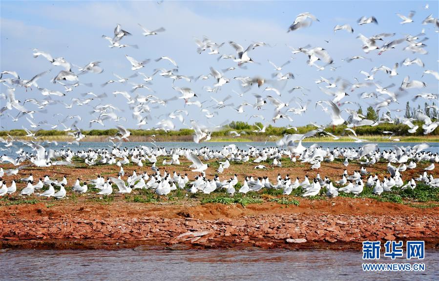 5月27日在陜西省神木市紅堿淖拍攝的遺鷗。陜西省神木市紅堿淖是中國(guó)最大的沙漠淡水湖,近年來(lái)隨著周邊生態(tài)環(huán)境改善,紅堿淖水位逐年提升,水域面積不斷擴(kuò)大,每年四至八月,都會(huì)吸引大批遺鷗來(lái)此繁衍棲息,已成為遺鷗繁殖的重要基地。新華社記者劉瀟攝