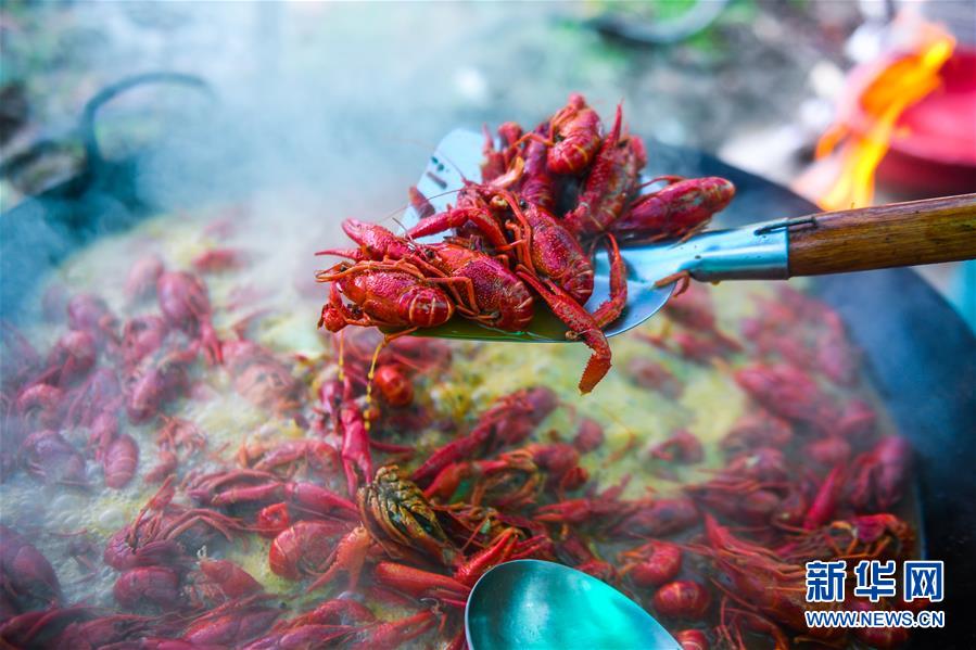 5月30日,廚師在龍蝦狂歡節(jié)現(xiàn)場(chǎng)烹制小龍蝦。
