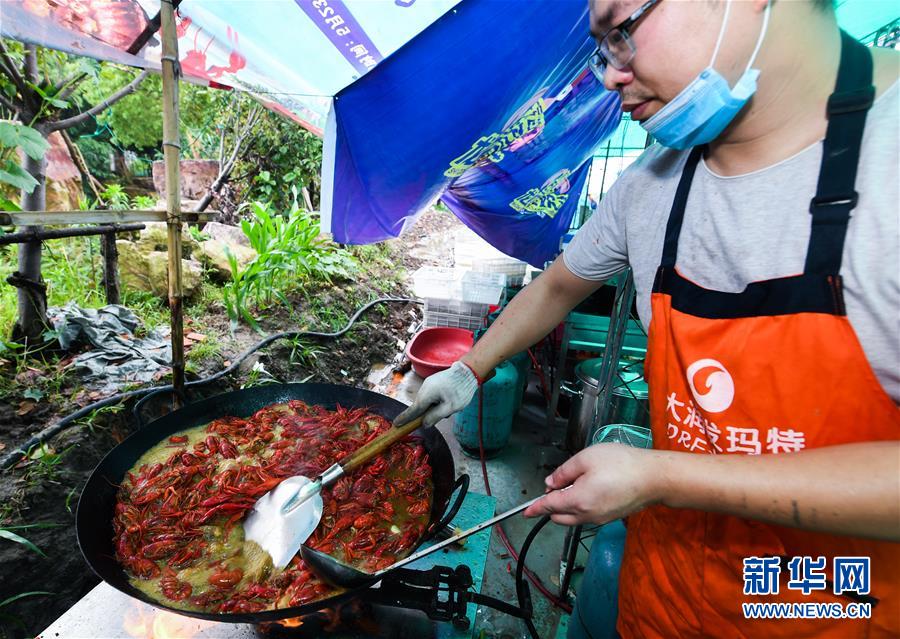 5月30日,廚師在龍蝦狂歡節(jié)現(xiàn)場(chǎng)烹制小龍蝦。