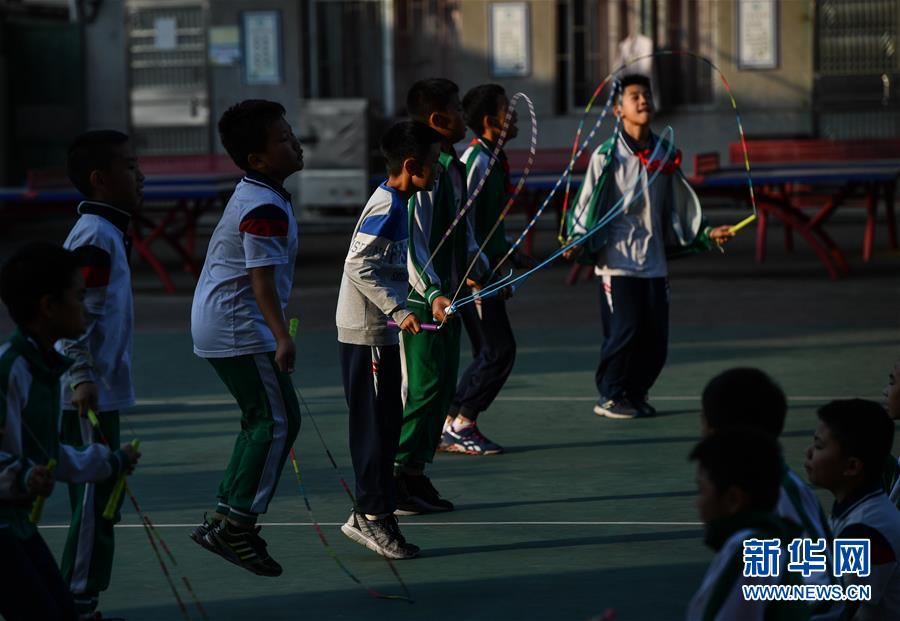 跳繩運(yùn)動已經(jīng)深深融入七星小學(xué)的日常,體育課上同學(xué)們在練跳繩(2019年11月18日攝)。新華社記者劉大偉攝