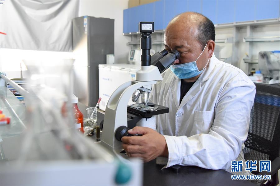 6月2日,在新疆野馬繁殖研究中心,工作人員在進行馬糞的寄生蟲監(jiān)測。新華社記者丁磊攝。