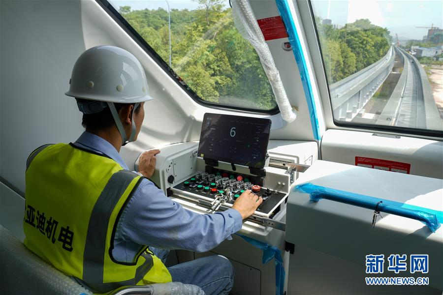 6月3日,工程技術(shù)人員在“云巴”車廂內(nèi)對(duì)自動(dòng)駕駛系統(tǒng)進(jìn)行調(diào)試。近日,重慶市首條“云巴”示范線項(xiàng)目在重慶璧山區(qū)正式亮相。此次發(fā)布的“云巴”采用電能驅(qū)動(dòng),具有轉(zhuǎn)彎半徑小、爬坡能力強(qiáng)、噪音低、安全性高、建設(shè)成本低、建造周期短等優(yōu)勢(shì),能為乘客提供更智能、舒適、便捷的出行體驗(yàn)。據(jù)介紹,璧山區(qū)“云巴”示范線項(xiàng)目自2019年8月開(kāi)建,線路正線全長(zhǎng)15.4km,共設(shè)車站15座,預(yù)計(jì)2020年9月全線通車。新華社記者劉潺攝。