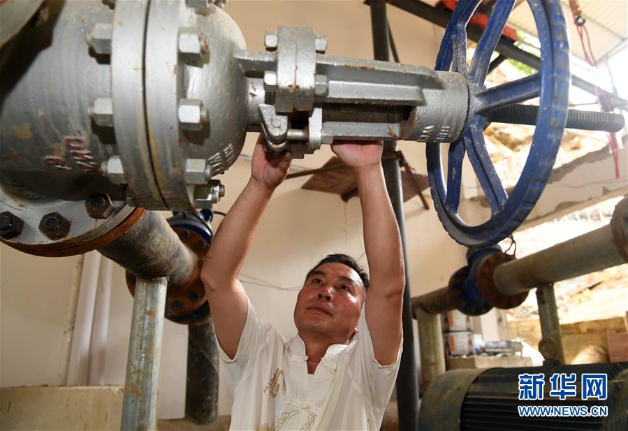 在廣西環(huán)江毛南族自治縣下南鄉(xiāng)抽水站,工作人員在檢查設(shè)備(5月22日攝)。新華社記者陸波岸攝。