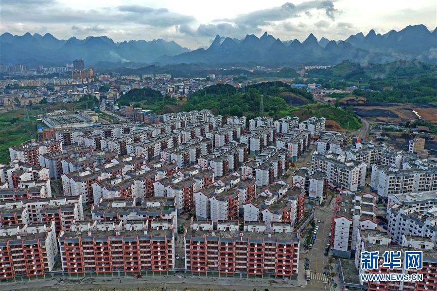 這是廣西環(huán)江毛南族自治縣毛南家園易地扶貧搬遷城北安置區(qū)(5月21日攝,無(wú)人機(jī)照片)。新華社記者周華攝。