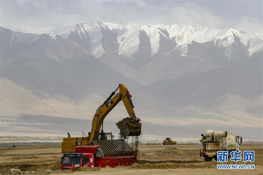 新疆塔什庫爾干機(jī)場施工現(xiàn)場(6月3日攝)。新華社記者胡虎虎攝。