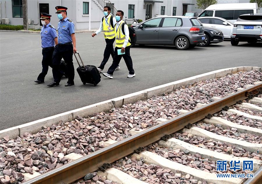 6月5日,伊迪內(nèi)卡邱(右一)和特瑞薩(右二)在帶教司機(jī)的帶領(lǐng)下去庫內(nèi)接車。 新華社記者 李安 攝