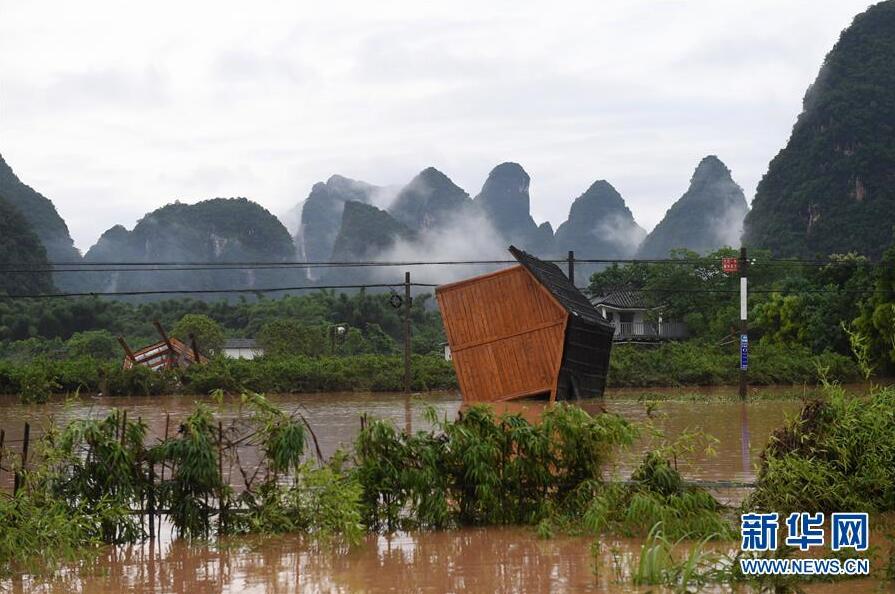 這是廣西陽(yáng)朔縣被洪水沖毀的旅游設(shè)施(6月7日攝)。新華社記者陸波岸攝