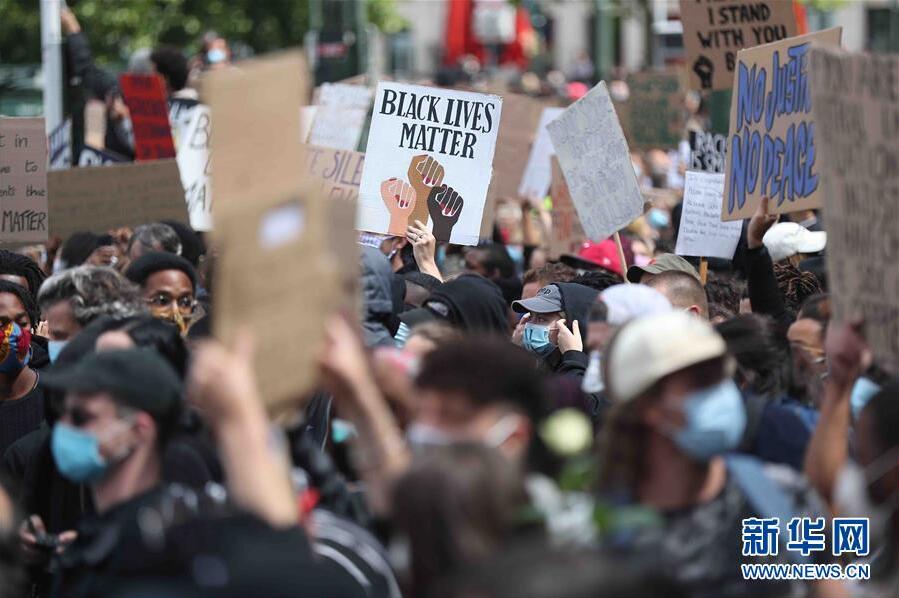 6月7日,民眾在比利時布魯塞爾市中心的司法宮附近參加示威活動。比利時民眾當(dāng)日在布魯塞爾市中心的司法宮附近舉行示威活動,抗議美國明尼阿波利斯市警察暴力執(zhí)法致非裔男子喬治·弗洛伊德死亡。新華社記者鄭煥松攝