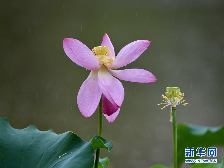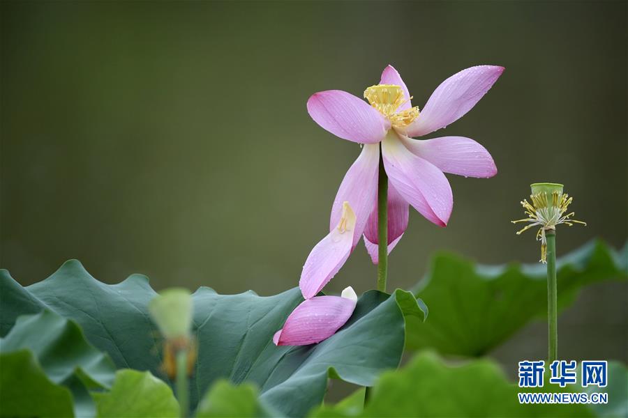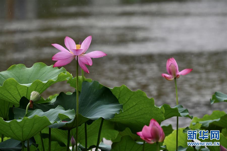 6月7日,一陣小雨過后,福州金山公園內(nèi)盛開的荷花愈加嬌艷欲滴,吸引市民前來游覽。新華社記者姜克紅攝