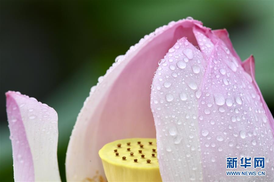 6月7日,一陣小雨過后,福州金山公園內(nèi)盛開的荷花愈加嬌艷欲滴。新華社記者姜克紅攝