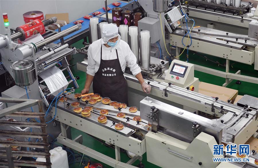 6月6日,云南曲靖市沾益區(qū)一家食品公司的工人在包裝沾益小粑粑。沾益小粑粑是云南省曲靖市沾益區(qū)一種獨(dú)具風(fēng)味的特色食品,采用優(yōu)質(zhì)上等食材,經(jīng)過20道工序精心制作而成,受到消費(fèi)者歡迎。沾益小粑粑產(chǎn)業(yè)也帶動當(dāng)?shù)剞r(nóng)民實(shí)現(xiàn)增收。新華社記者楊宗友攝