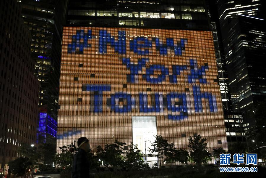 6月7日,美國(guó)紐約世貿(mào)中心一號(hào)樓外墻呈現(xiàn)出“紐約堅(jiān)強(qiáng)”字樣。新華社記者王迎攝