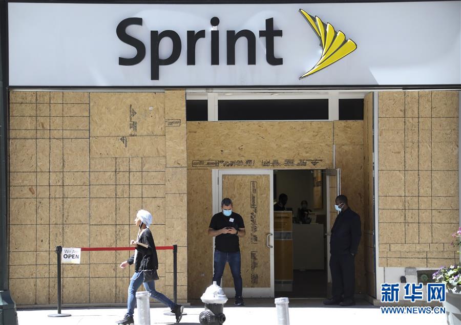 6月8日,店員在美國紐約一家電信運營商營業(yè)廳外等待顧客。在因新冠疫情進入“居家令”近三個月之后,美國紐約市于當?shù)貢r間8日開始“解封”,進入經(jīng)濟重啟的第一階段。新華社記者王迎攝