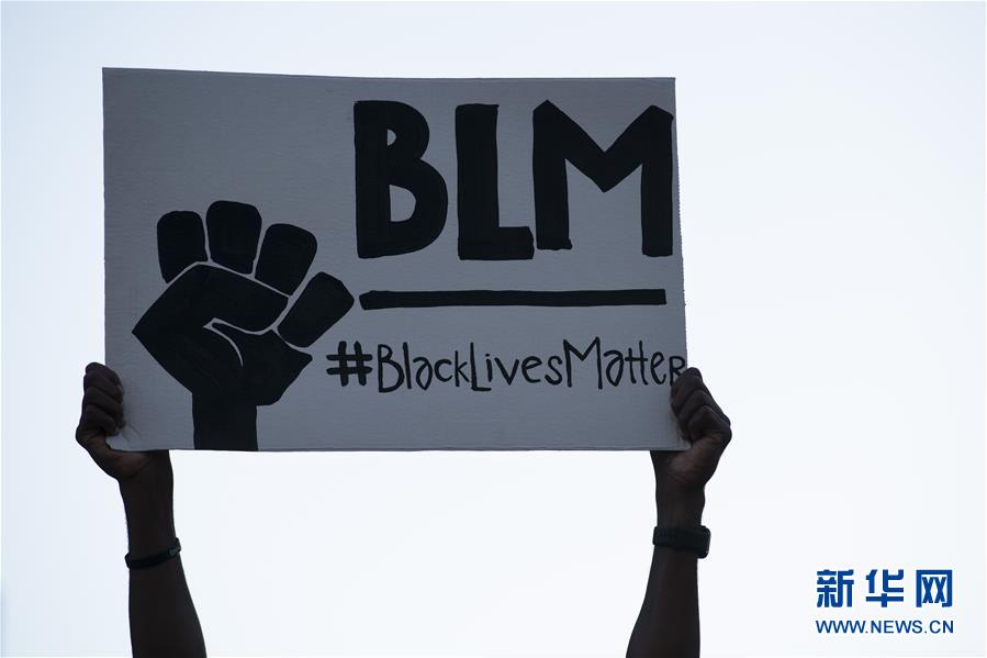 6月8日,一名男子在美國(guó)華盛頓白宮附近手舉“黑人的命也是命”的抗議標(biāo)語(yǔ)。新華社記者劉杰攝