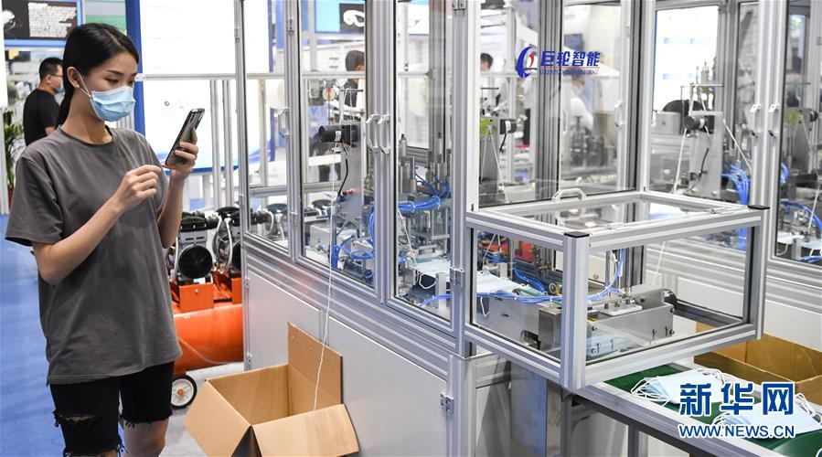 6月10日,觀眾參觀展會上的一臺口罩生產(chǎn)設(shè)備。當(dāng)日,廣州國際防疫物資展覽會在保利世貿(mào)博覽館舉行。本次展會面積共計(jì)3.6萬平方米,設(shè)有防疫產(chǎn)品、設(shè)備、綜合服務(wù)、原輔料等4個展區(qū),參展企業(yè)約600家。新華社記者鄧華攝