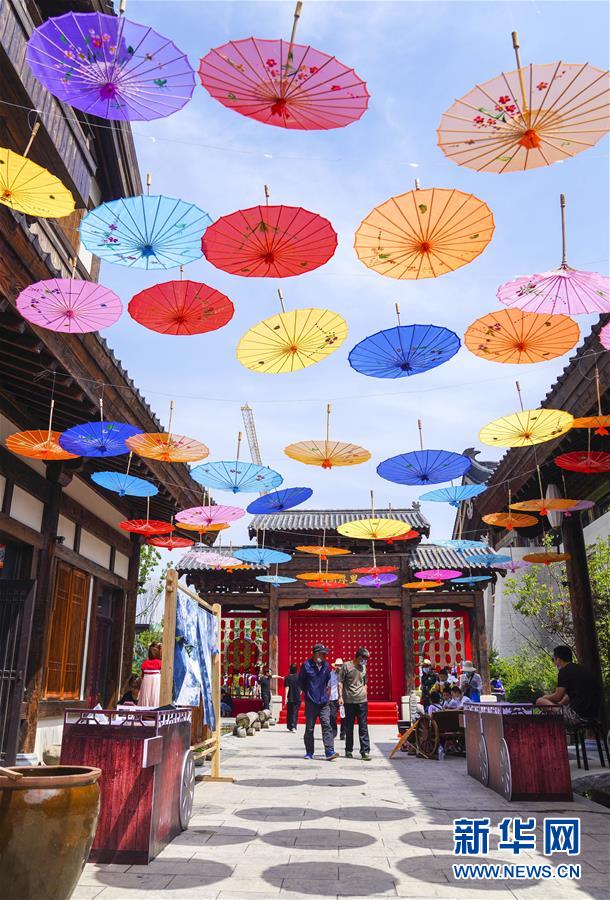 6月13日,市民在長(zhǎng)春市世茂蓮花山小鎮(zhèn)寬厚里商街參觀游覽。當(dāng)日是“文化和自然遺產(chǎn)日”。吉林長(zhǎng)春首屆蓮花山消夏生活節(jié)在世茂蓮花山小鎮(zhèn)舉行?;顒?dòng)將非遺展示與假日消暑休閑相結(jié)合,讓游人在“古色古香”的油紙傘巷中品傳統(tǒng)文化魅力,享夏日休閑愜意。新華社記者 許暢 攝