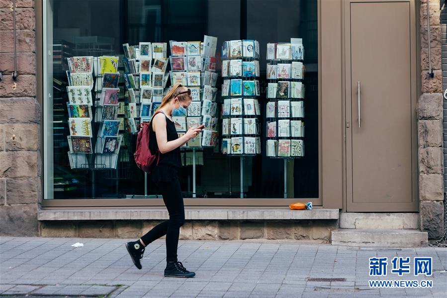 6月13日,戴口罩的行人走在比利時布魯塞爾街頭。新華社記者 張鋮 攝