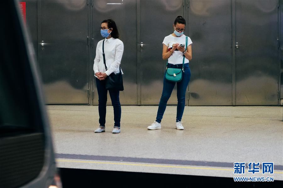 6月13日,戴口罩的乘客在比利時布魯塞爾一處地鐵站候車。新華社記者 張鋮 攝