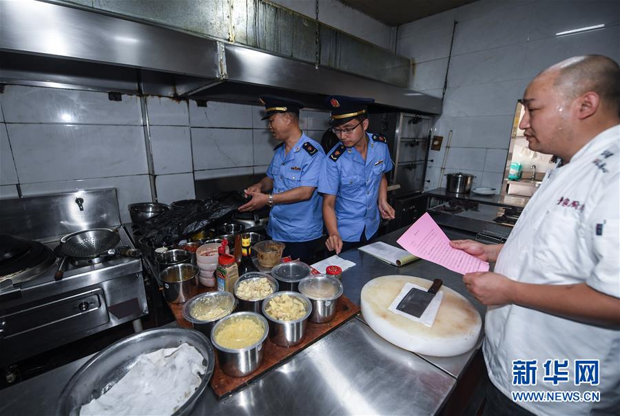 6月17日,市場(chǎng)監(jiān)管執(zhí)法人員在東林鎮(zhèn)一家農(nóng)家樂(lè)內(nèi)開(kāi)展專(zhuān)項(xiàng)執(zhí)法行動(dòng),檢查是否存在非法經(jīng)營(yíng)和加工野生動(dòng)物的情況。新華社記者 徐昱 攝