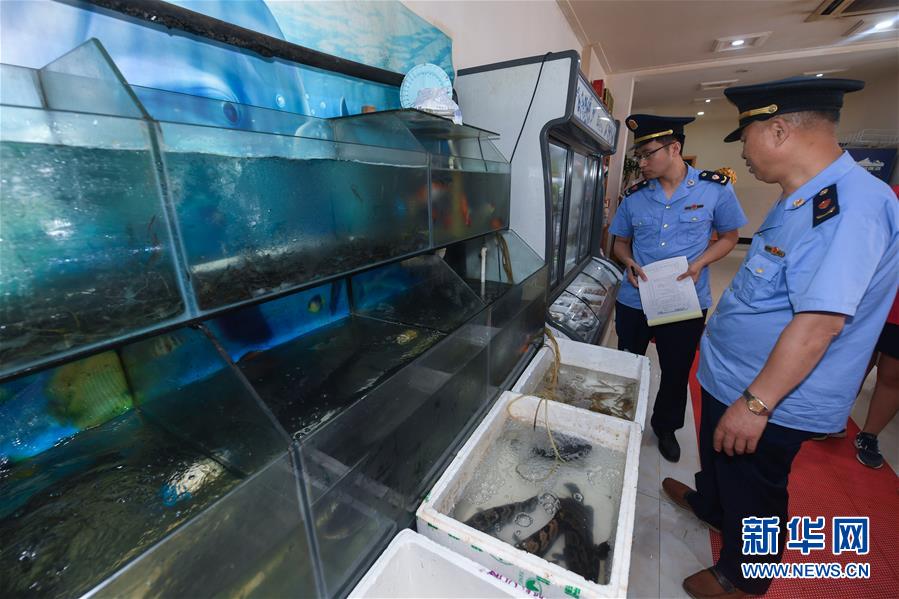 6月17日,市場(chǎng)監(jiān)管執(zhí)法人員在東林鎮(zhèn)一家農(nóng)家樂內(nèi)開展專項(xiàng)執(zhí)法行動(dòng),檢查是否存在非法經(jīng)營(yíng)和加工野生動(dòng)物的情況。新華社記者 徐昱 攝