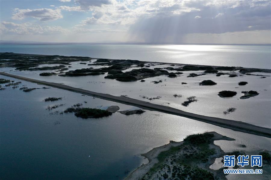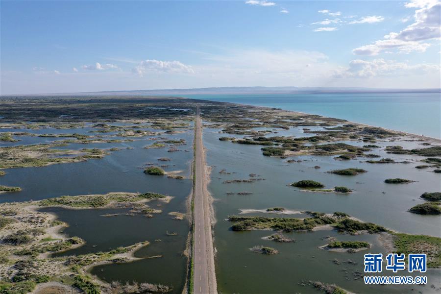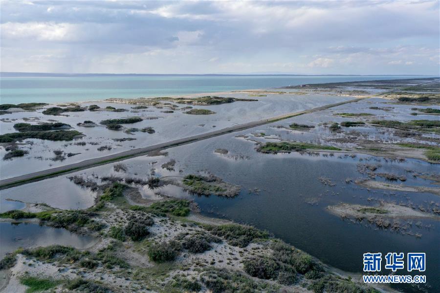 6月19日拍攝的新疆烏倫古湖國家濕地公園(無人機照片)。烏倫古湖國家濕地公園位于新疆阿勒泰地區(qū)福海縣城以西,由烏倫古湖和吉力湖兩部分組成。烏倫古湖濕地公園是遷徙候鳥飛越天山和阿爾泰山的“能量補充站”,良好的濕地生態(tài)吸引著大量遷徙鳥類在此集結(jié)成群,繁殖棲息,成為一道靚麗的風(fēng)景線。新華社記者 沙達提 攝