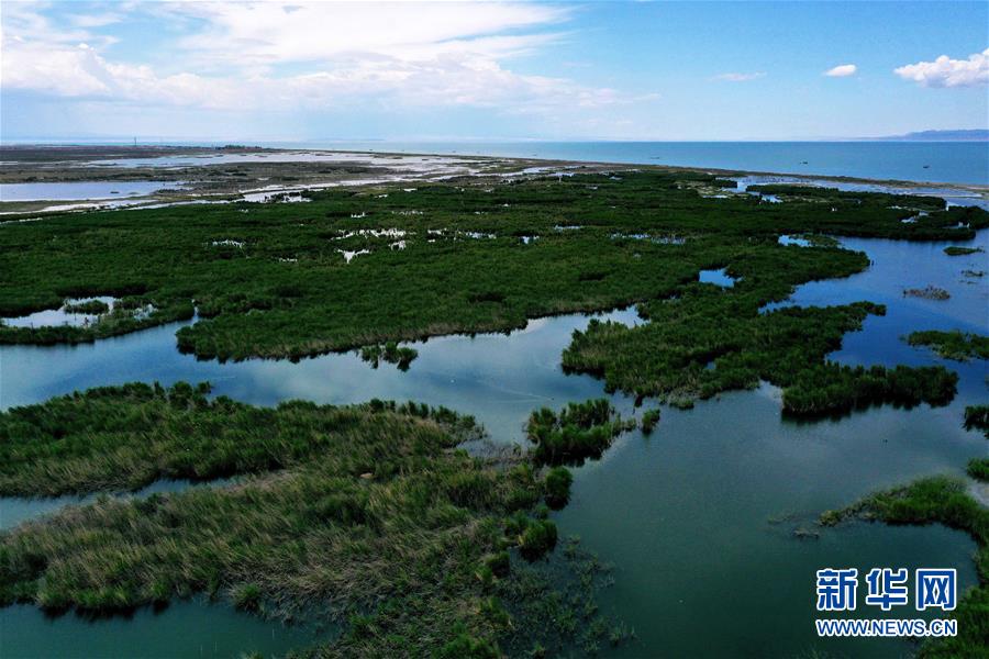 6月18日拍攝的新疆烏倫古湖國家濕地公園(無人機照片)。烏倫古湖國家濕地公園位于新疆阿勒泰地區(qū)福海縣城以西,由烏倫古湖和吉力湖兩部分組成。烏倫古湖濕地公園是遷徙候鳥飛越天山和阿爾泰山的“能量補充站”,良好的濕地生態(tài)吸引著大量遷徙鳥類在此集結(jié)成群,繁殖棲息,成為一道靚麗的風(fēng)景線。新華社記者 沙達提 攝