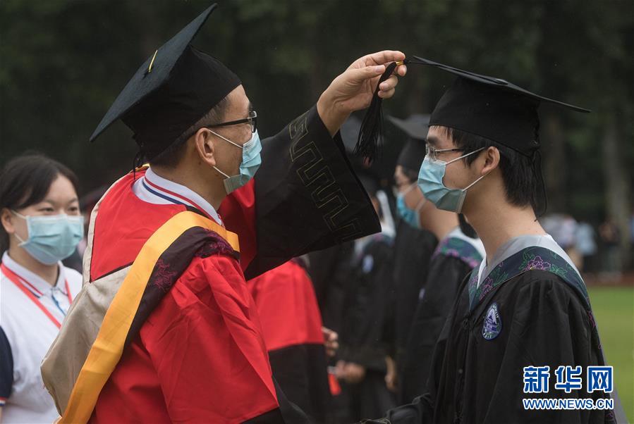 6月20日,導(dǎo)師在畢業(yè)典禮上為畢業(yè)生撥穗。新華社記者 肖藝九 攝