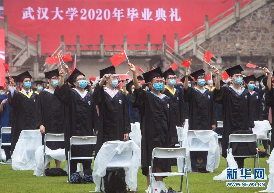 6月20日,武漢大學畢業(yè)生在畢業(yè)典禮上。