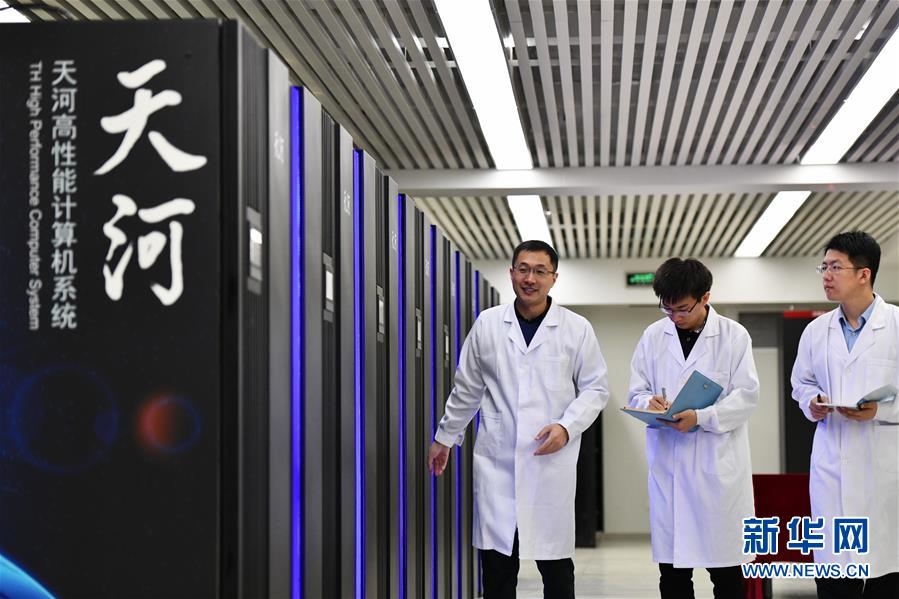 工作人員在國家超級計(jì)算天津中心“天河三號”原型機(jī)機(jī)房內(nèi)巡查(2019年4月24日攝)。新華社記者李然攝