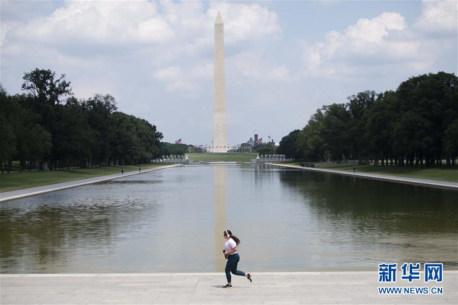 6月22日,在美國首都華盛頓,一名女子在華盛頓紀(jì)念碑附近跑步。美國約翰斯·霍普金斯大學(xué)22日發(fā)布的新冠疫情最新統(tǒng)計(jì)數(shù)據(jù)顯示,美國累計(jì)死亡病例超過12萬例。新華社記者劉杰攝