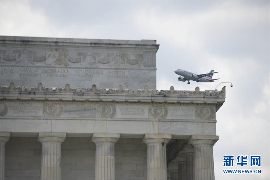 6月22日,在美國首都華盛頓,一架飛機(jī)從林肯紀(jì)念堂上空飛過。美國約翰斯·霍普金斯大學(xué)22日發(fā)布的新冠疫情最新統(tǒng)計(jì)數(shù)據(jù)顯示,美國累計(jì)死亡病例超過12萬例。新華社記者劉杰攝