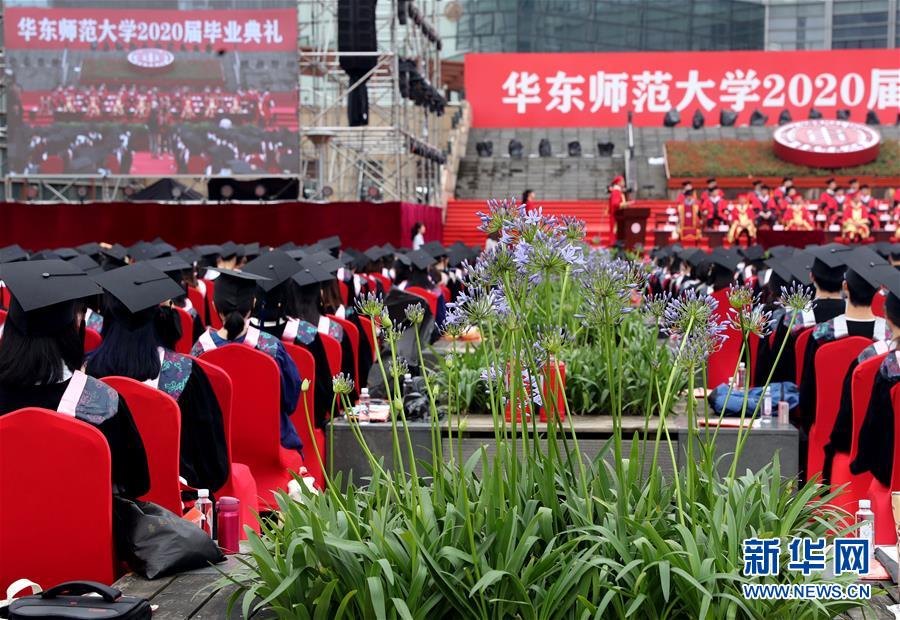 6月23日,在華東師范大學(xué)閔行校區(qū)的畢業(yè)典禮上拍攝的本屆“畢業(yè)花”——百子蓮。該校有“畢業(yè)花”的傳統(tǒng),每年由畢業(yè)生票選花卉品種,學(xué)校提前栽培,畢業(yè)季時開滿校園,作為學(xué)校送別畢業(yè)生的禮物。當日,華東師范大學(xué)舉行2020屆畢業(yè)典禮。由于疫情防控需要,今年的典禮在兩個校區(qū)分別舉辦,并全程在線直播。約7700名華東師范大學(xué)2020屆畢業(yè)生通過現(xiàn)場或“云端”的方式參加畢業(yè)典禮。新華社記者劉穎攝