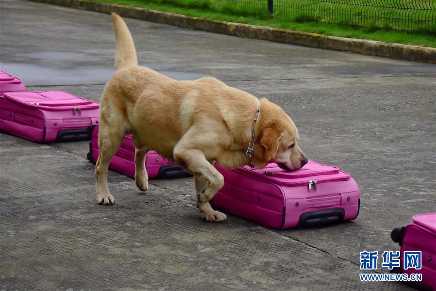 6月24日,緝毒犬“多多”練習(xí)辨認毒品的位置。新華社記者 鄭夢雨 攝