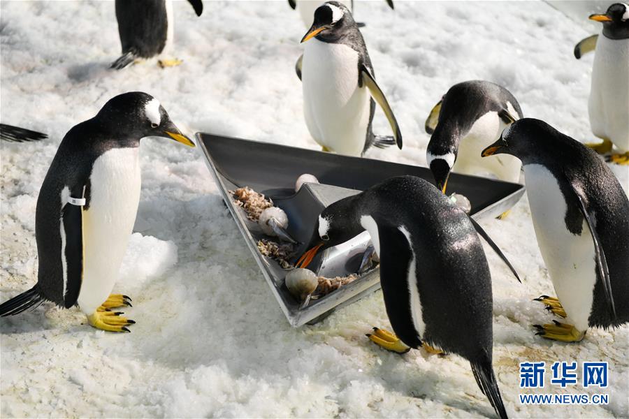 6月24日,哈爾濱極地館的企鵝在品嘗“魚粽”。當(dāng)日,哈爾濱極地館的工作人員特地準(zhǔn)備了“魚粽”“肉粽”,讓生活在這里的極地動(dòng)物也品嘗一下端午美食。新華社記者王建威攝
