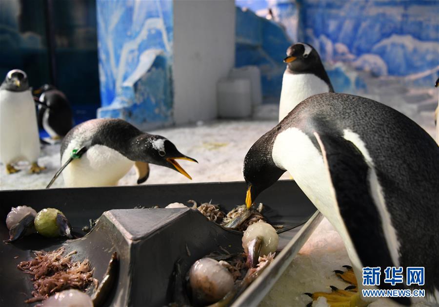 6月24日,哈爾濱極地館的企鵝在品嘗“魚粽”。當(dāng)日,哈爾濱極地館的工作人員特地準(zhǔn)備了“魚粽”“肉粽”,讓生活在這里的極地動物也品嘗一下端午美食。新華社記者王建威攝