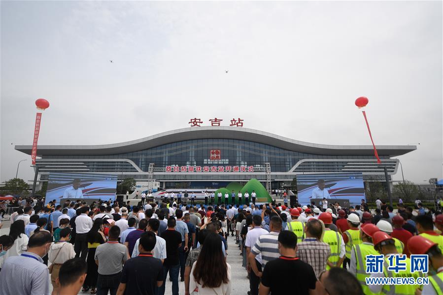 這是6月28日拍攝的商合杭高鐵浙江安吉站開通儀式現(xiàn)場。新華社記者黃宗治攝