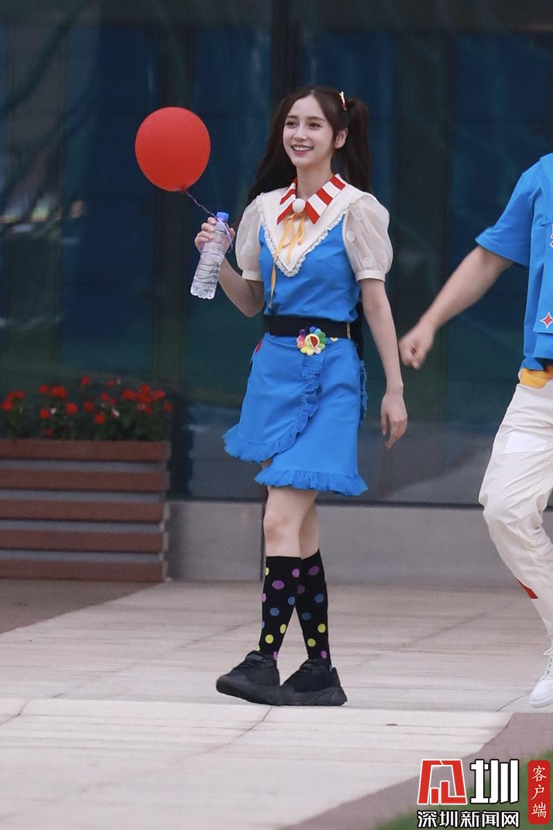 楊穎(angelababy)穿藍(lán)色背帶裙扎雙馬尾清新可愛(ài)