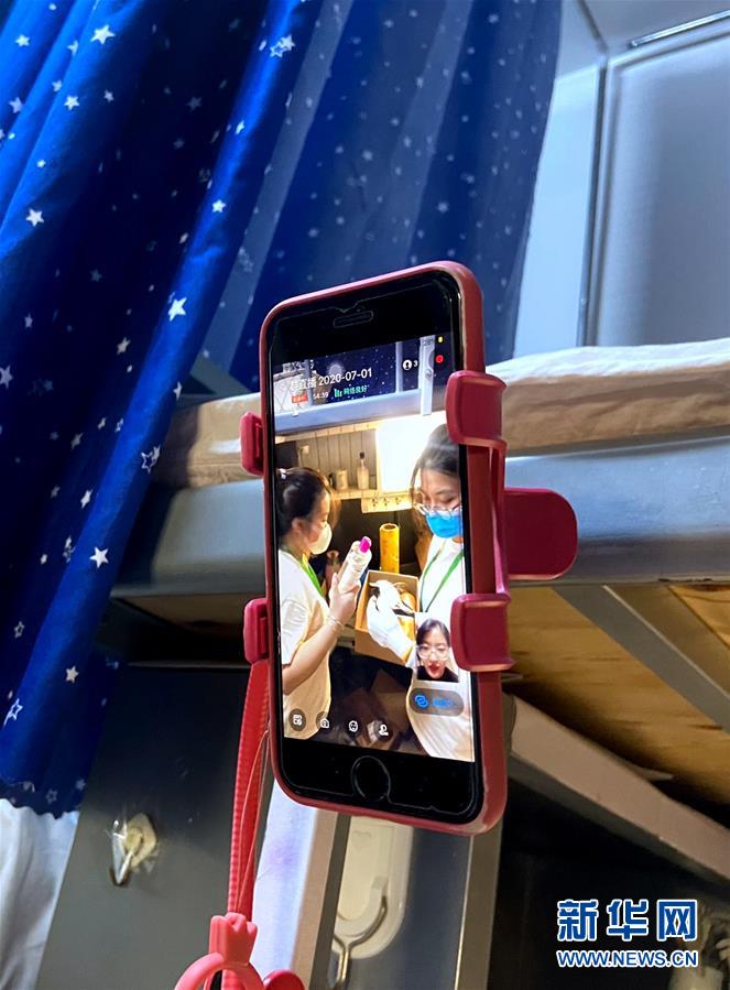 7月1日,在北理工學(xué)生宿舍,輔導(dǎo)員通過手機(jī)視頻方式,核對(duì)畢業(yè)生的個(gè)人物品。6月29日起,北京理工大學(xué)教職員工開始為2020屆6000多名需要打包的畢業(yè)生集中進(jìn)行行李打包、郵寄和留置物品存放工作。經(jīng)過提前與畢業(yè)生“一對(duì)一”溝通,老師們耐心細(xì)致地通過手機(jī)“直播”打包行李的全過程,與每一個(gè)同學(xué)認(rèn)真核對(duì)其個(gè)人物品,細(xì)心收納擺放、整理密封、搬運(yùn)寄送,讓不能返校的畢業(yè)生們安心、放心。新華社記者魏夢(mèng)佳攝