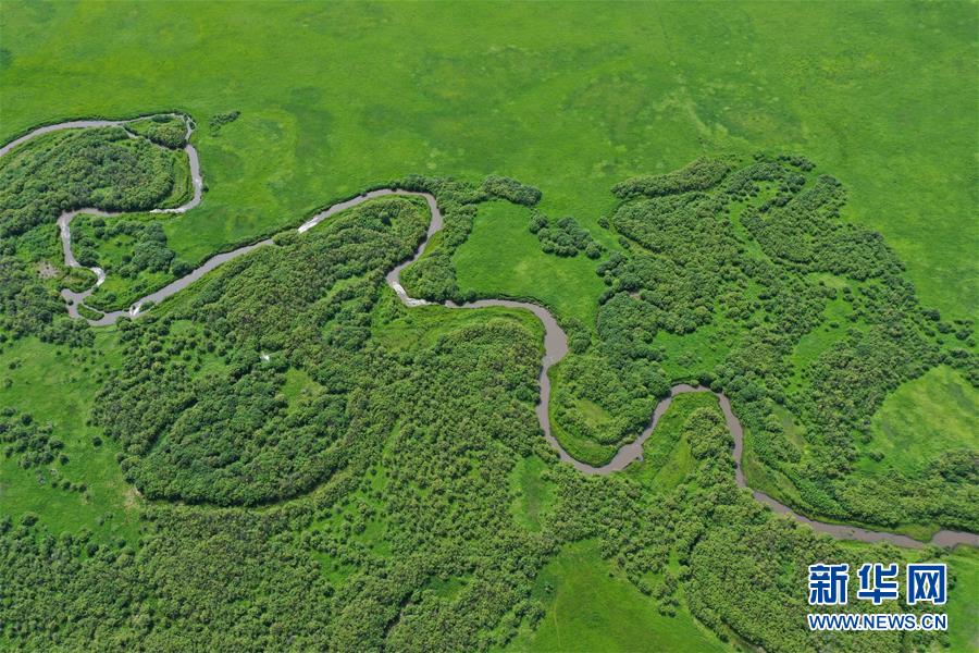 烏蘭毛都草原景色(7月2日無人機(jī)照片)。盛夏時(shí)節(jié),內(nèi)蒙古興安盟科爾沁右翼前旗的烏蘭毛都草原綠意盎然,風(fēng)景醉人。烏蘭毛都草原地處大興安嶺南麓,屬丘陵山地草原,風(fēng)光獨(dú)特。新華社記者徐欽攝