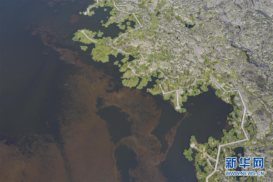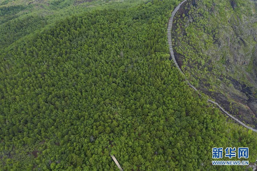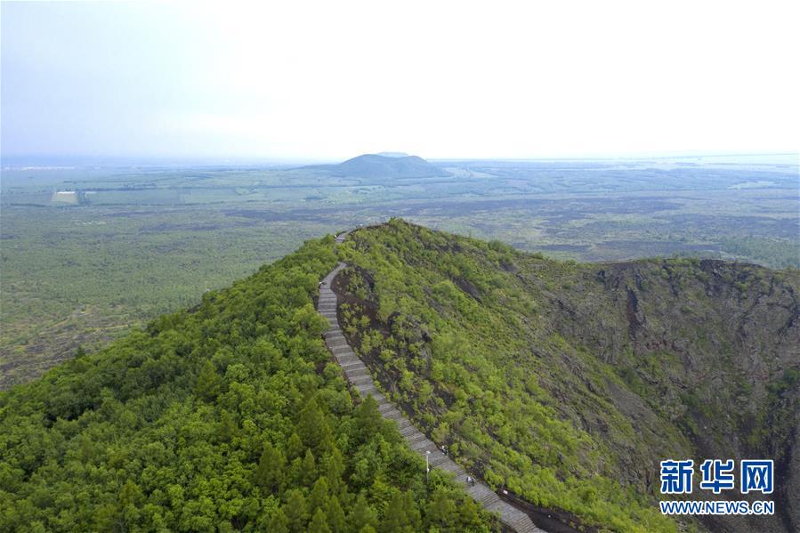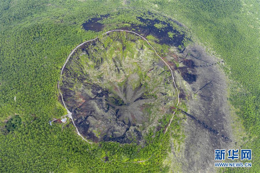 這是7月3日拍攝的五大連池風景區(qū)(無人機照片)。 時下,五大連池風景區(qū)內(nèi)植被蔥蘢,在火山、熔巖臺地、火山堰塞湖的映襯下,景色壯美。 五大連池風景區(qū)位于黑龍江省黑河市,是較為典型和完整的近代火山噴發(fā)遺跡,被喻為“天然的火山博物館”。 新華社記者 謝劍飛 攝